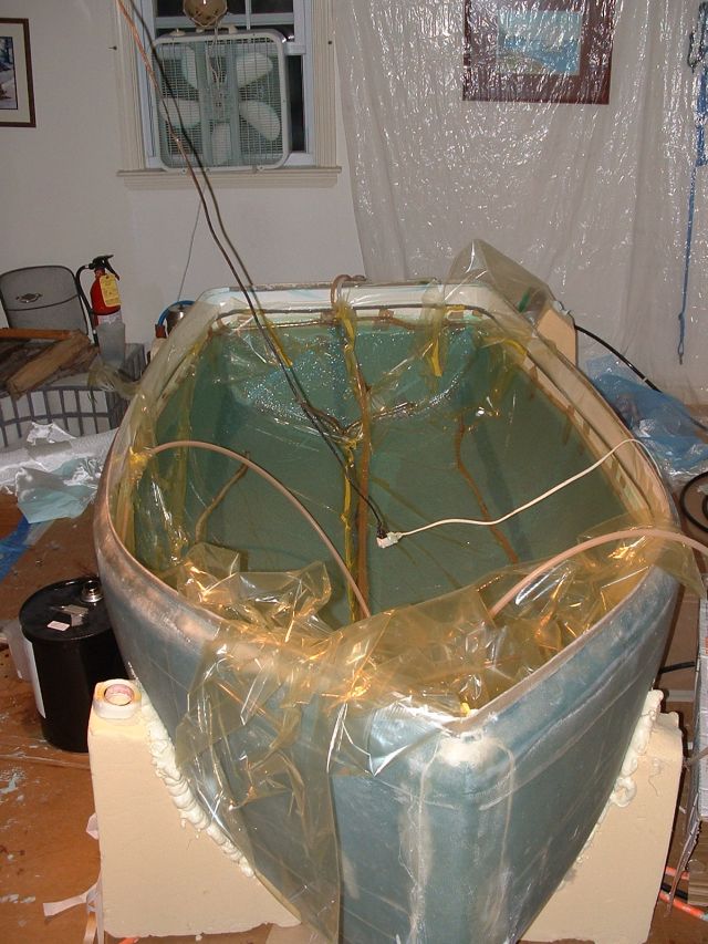 - One big advantage to this system is that much of the styrene is trapped under the bag. I still wore an organic vapor mask, gloves and eye protection during the entire operation.