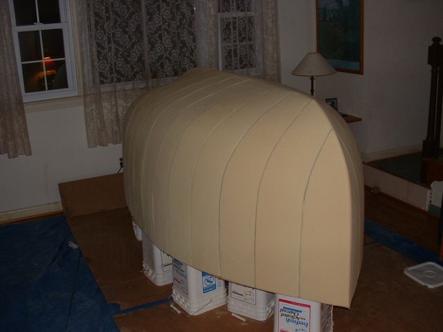 - Isosanurate foam in sheets 6 inches thick was glued to the back of each plywood cross section. Each section was then glued in series, being careful to line them up accurately.