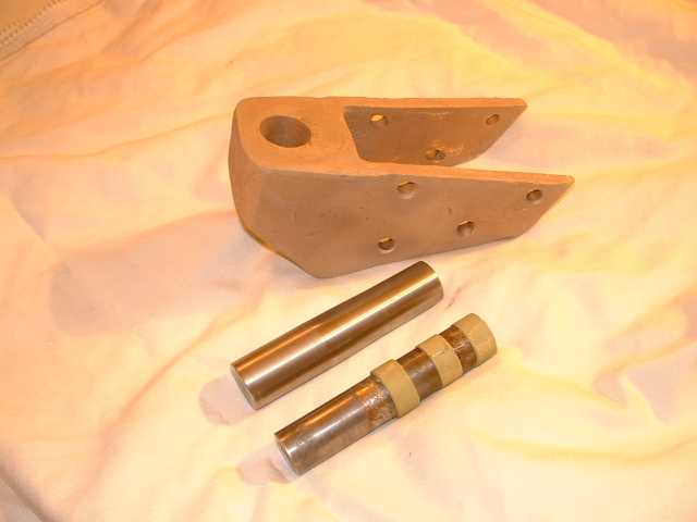 | Here a larger pin was made, sized to fit in the rudder with a little play and a light press in the shoe. The shoe was opened up to be a cylinder. The shoe is sand blasted and coated with epoxy |